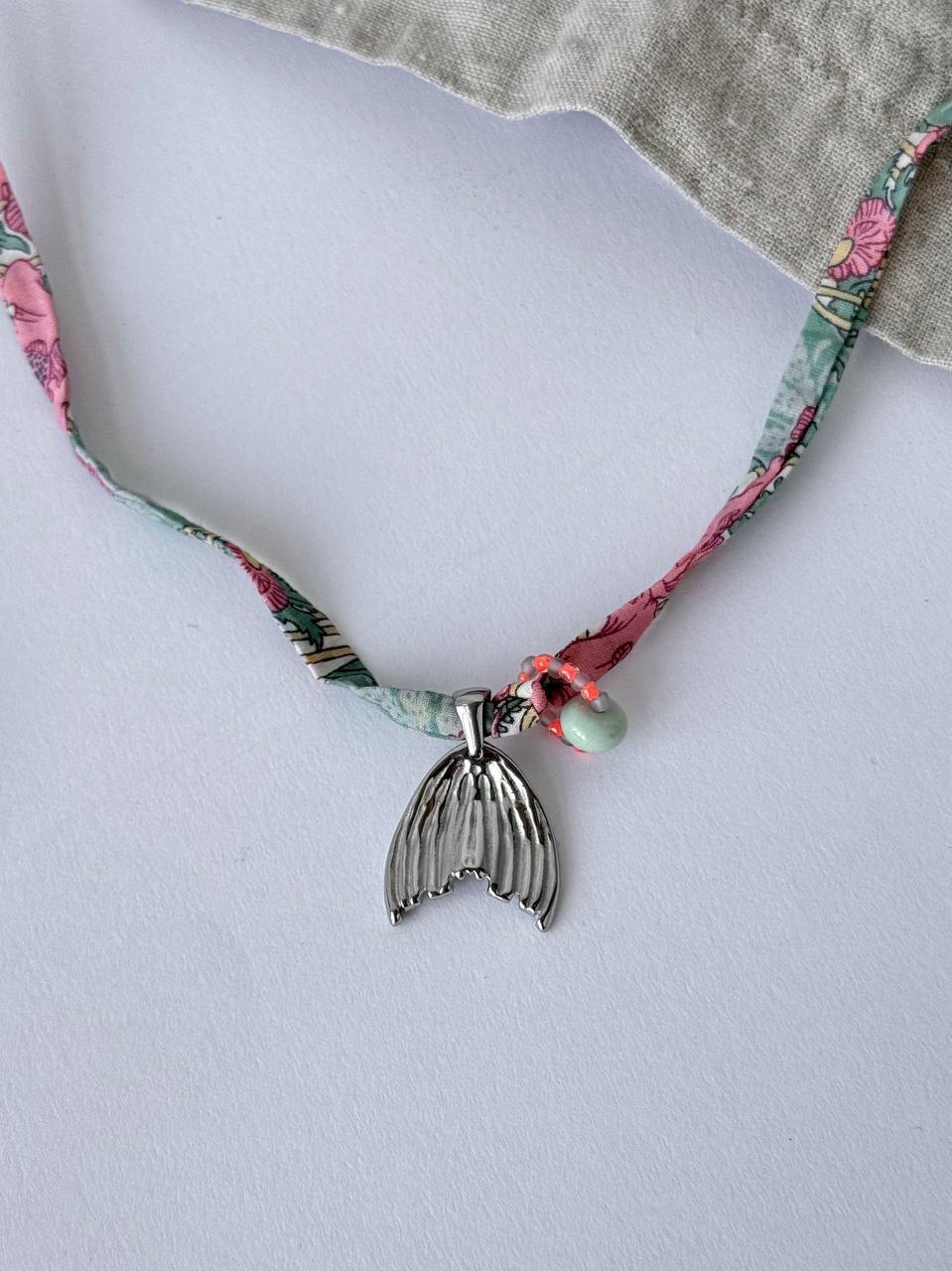Колье ручной работы из коллаборации с брендом украшений «МаМи» сделано из хлопка Либерти, украшено подвеской «Хвостик» из стали и японского бисера. При создании этого дропа мы вдохновлялись воспоминаниями о летних приключениях: каникулы у бабушки, долгожданные поездки к морю, долгие прогулки с друзьями и веселые игры в парке. Закройте глаза и вспомните, как это было! Все эти трепетные эмоции как нельзя лучше передают дух и настроение коллекции! Украшения с основой из текстиля, выполненные из той же ткани, что и знаковые образы La petite Lucie. Мы целенаправленно выбирали материалы, которые устойчивы к воздействию воды, песка или пота, что делает изделия идеальными для активного летнего отдыха. Каждая деталь украшения ассоциируется с летним настроением, атмосферой радости и беззаботности